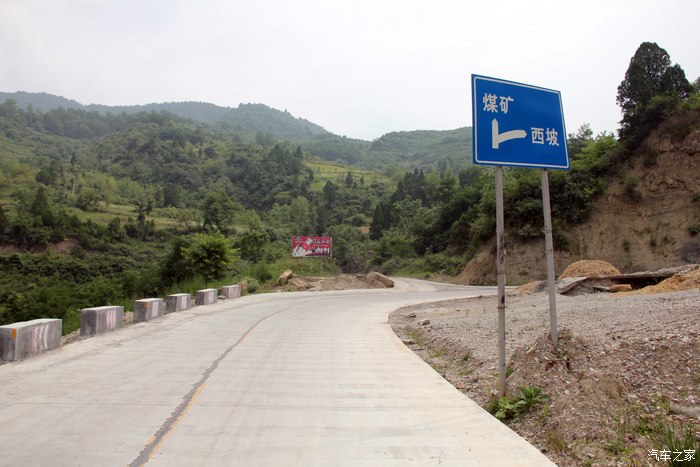 半路一个指示牌,向左去煤矿,向右去西坡。路况不错,一直水泥路。