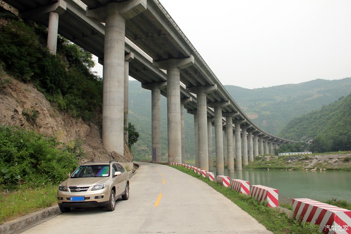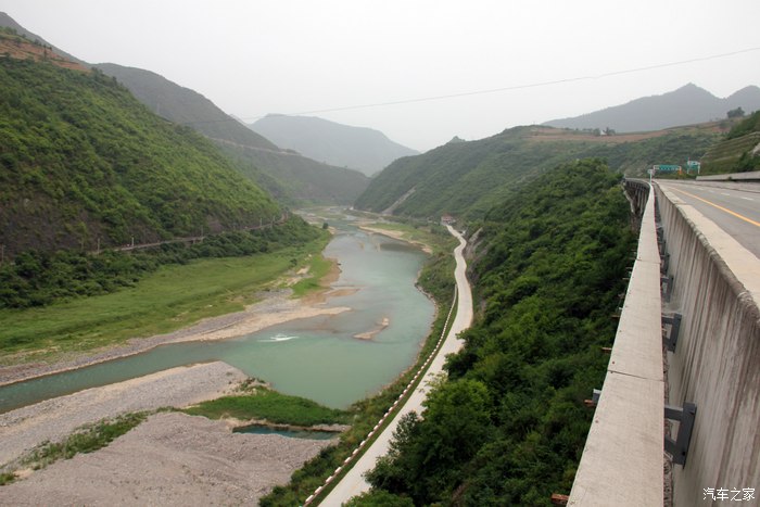 越过秦岭南下。嘉陵江开始显露面目。 海拔高度从1400米下降到1000米,一路下坡。坡大放手动二挡,坡小放手动三挡。表显瞬时油耗2-3