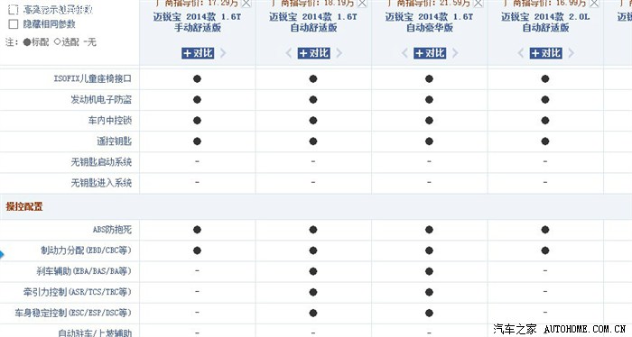 以前买车的时候关注过,我一直纳闷为什么哇什么来着一直强调凯美瑞2.0没有ESP.印象中迈锐宝有两款也没有,今天特地去看一下配置: