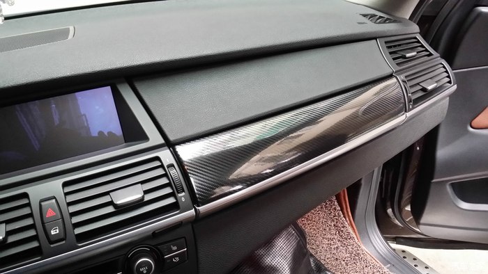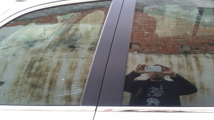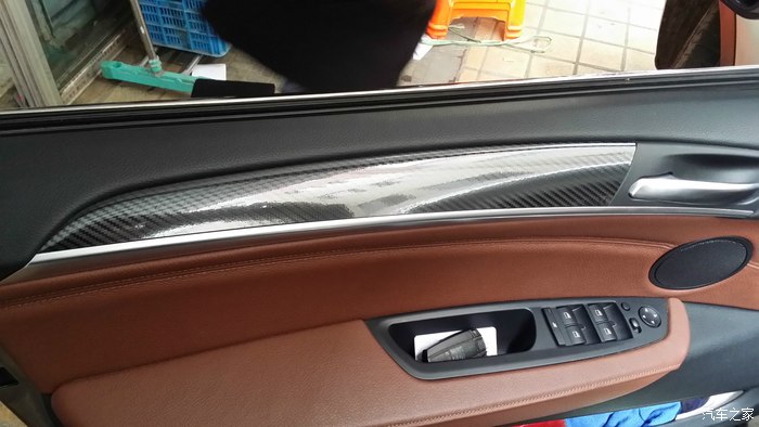 木纹内饰时间久了,有点审美疲劳,所以把内饰跟中柱都贴成碳纤维了!