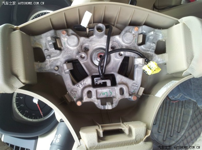 加装方控的例子,但我们车的方向盘根本不能像他们那样加装。最近在网上刚好看到别的车加装F3的方控一下启发了我,我也可以这样改呀。F3音控是两线的,拆出dvd测了下3条线接两条可以控制,马上行动掏了个回来,到手后立刻开工: