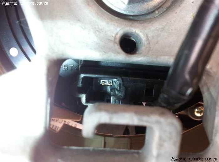 扒开插头看到游丝只有两个脚,心一下凉了下来。喇叭用了一个剩下一个怎么用。只能拆开DVD量一下2条线,刚好有条是与地相通,信心马上又来了,可以跟方向盘共地呀那一根线就够了。