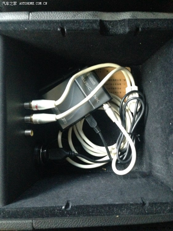2.如图所示,这个接收器的供电也来源于手套箱内的电源口,输入直接进AUX,然后平铺在扶手箱底部。