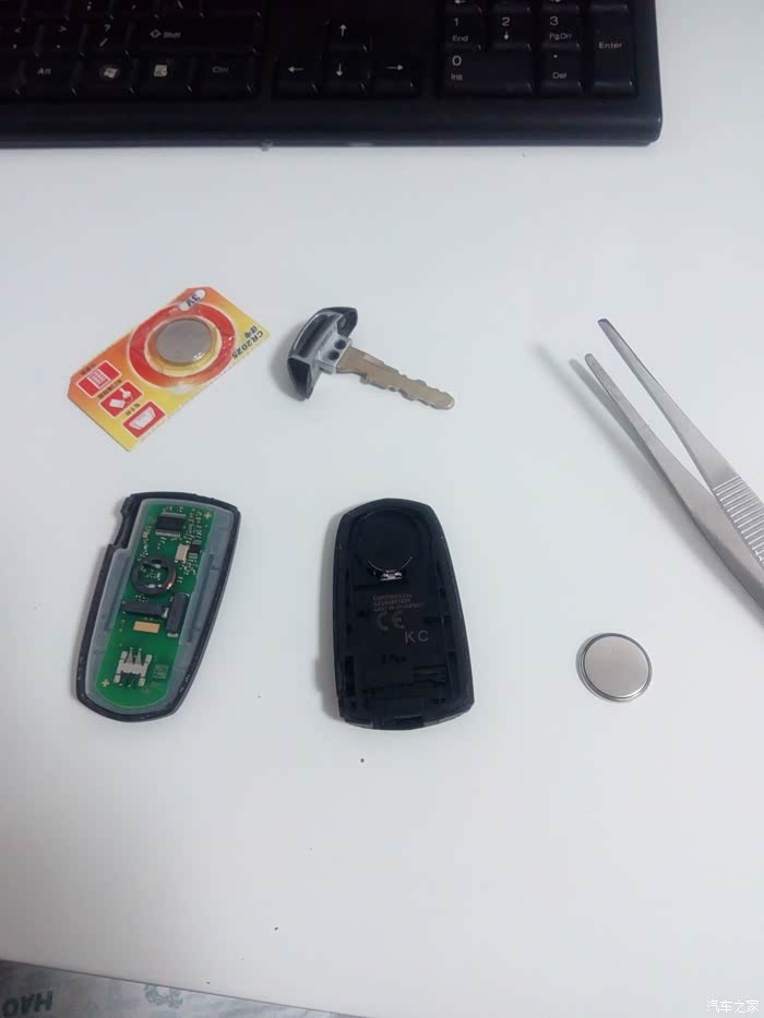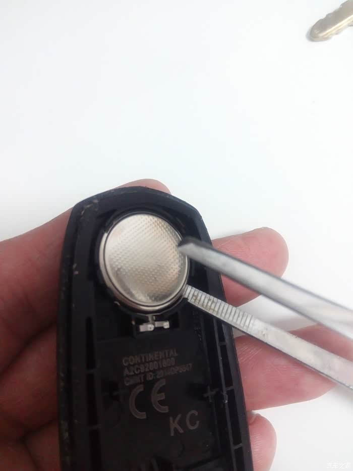 咱们车钥匙上就是纽扣电池的就必须撬动遥控钥匙的结合缝隙,撬开遥控钥匙的外壳更换,更换是还要注意区分正负极(正极下,负极上)。按照原样安装到位。