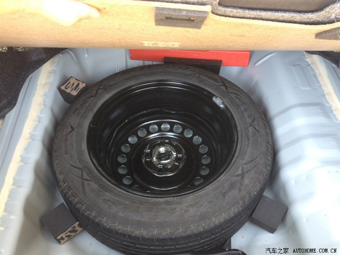 全尺寸备胎不单止是主胎坏了后,充当主胎行驶的作用....其实还有一个更主要的作用(比较爆胎,轮胎没气不是天天发生的事)全尺寸备胎放尾箱后,轮胎是直接与隔板接触,支撑着整个隔板.这样子的话,在中间的位置可以放重一点的物品都可以了.轮胎可以承受车子的重量.放点重一点的物品自然不在话下...以前中间位置是小备胎,靠着是上面说的三块黑棉支撑着,放重点的东西,估计会支持不住,发生下榻....所以舒适版的车友如果换了铝圈的话,最好就要留一个铁圈给自己做备胎用...