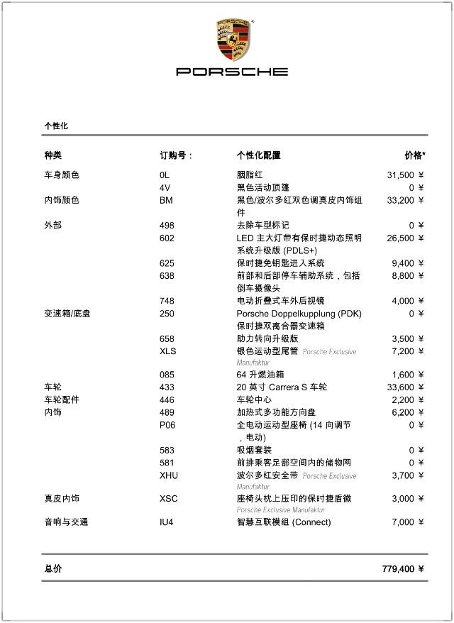 该说不说,回头细想,选配过程是购置保时捷时打鸡血且最有意思的阶段,好好享受这份纠结的喜悦吧!我觉得20万左右的选装是应该有的(保时捷啊,不然怎么跟别人聊天),这样即便不把某控做出点模样,也可以颜值、实用、性能皆有所包罗。当然,这可多可少,归根结底看预算,也因人而异。但无论如何,请不要裸奔,等同于跳过了这个有滋有味的过程。
