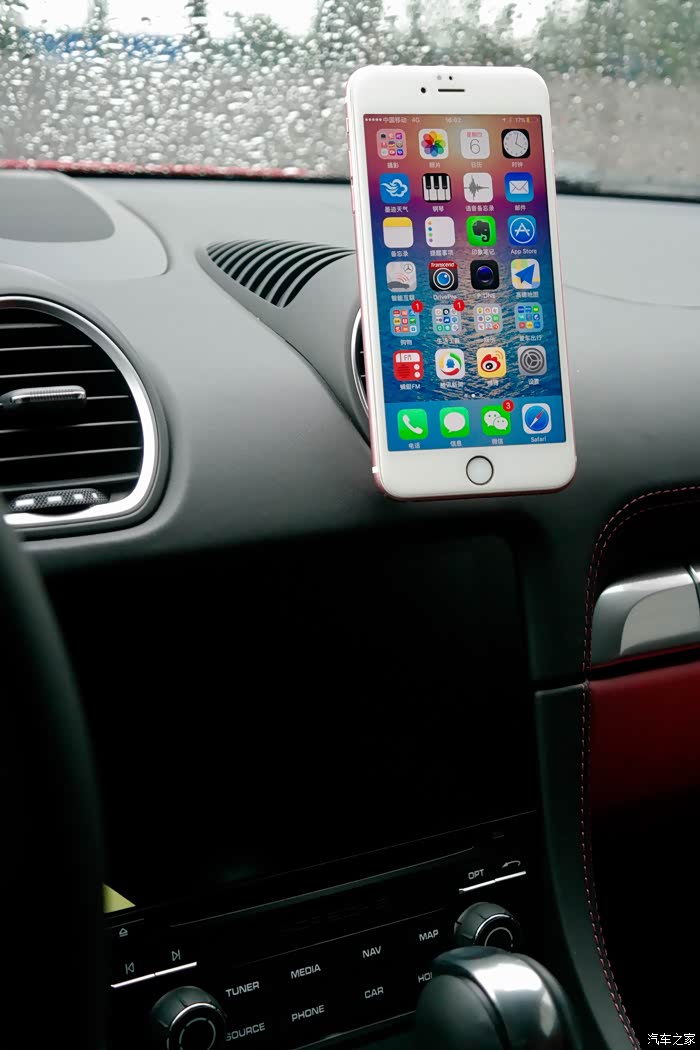 718储物空间确实少得可怜,最常用的手机竟然都找不到合适的位置,要是行驶中用手机导航一下什么的不免手忙脚乱也影响安全。于是乎我琢磨了一下,内饰中如果利用空调出风口的磁性支架是比较适合的解决办法,实践证明效果不错,黑色皮面与内饰统一,既不影响整体美观,也可以腾出双手专心驾驶,即便看手机视线也基本保持在前。