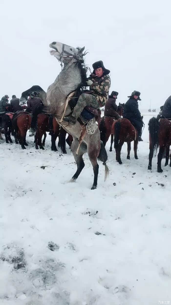 今天比较幸运,正好赶上当地举办的叼羊比赛,听说昭苏的梦之队种马场也来了,比赛的奖品马牛羊不等,最终结果是按照比赛成绩来计算的。相邻的几个村也派来了最好的马和套马的汉子,虽然种马场有踢场的嫌疑但是羊死谁手还不一定。