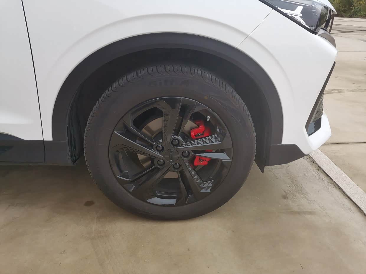 熏黑18寸大轮毂,这个尺寸装在小型SUV上,显得格外明显,并且配合红色的刹车卡掐,就是一个字帅。?