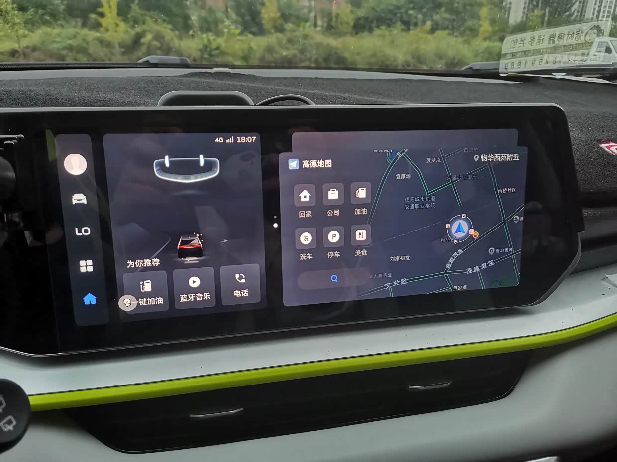 哈哈,车机主界面是自己弄的,和原本的系统桌面也可以来回切换,左侧有悬浮的高德,并且可以红绿灯读秒(自己升级,吉利厂家不给升级导航,只有我们自己动手了),右侧是悬浮的音乐,这样副驾驶操作音乐的时候,也不会影响我看导航。