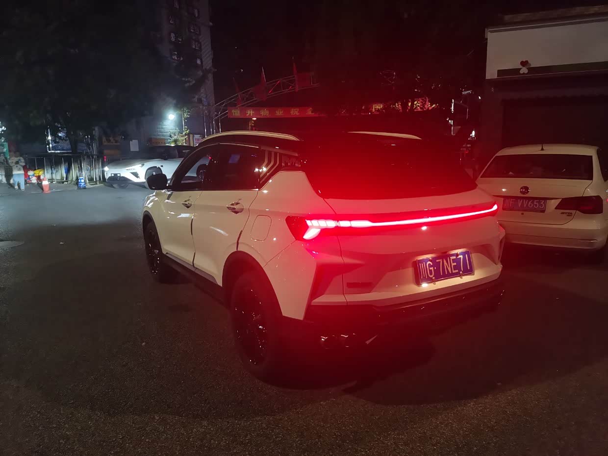 夜晚的尾灯,贯穿式,而且不是灯珠排列的那种,近看没有颗粒感,是很平顺的亮光,我最喜欢??的就是这个尾灯效果。