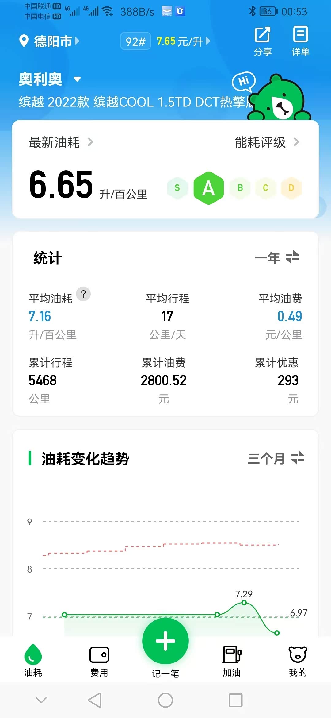 6.之前APP有单次油耗,可能有时候数据太过离谱,我跑过100个油,哈哈哈,后来不准看了,这点不安逸。