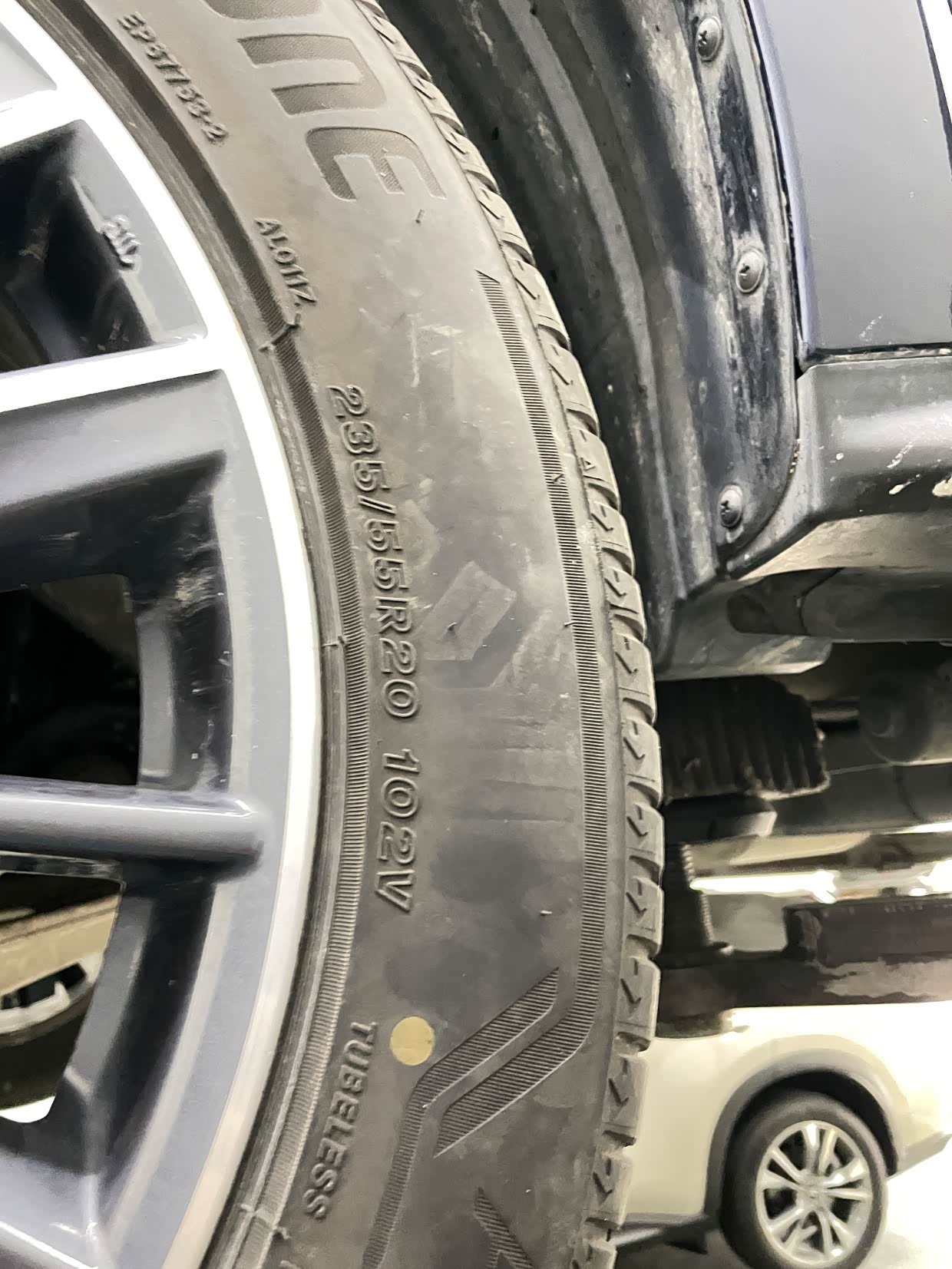 上一代QX60配的原厂轮胎是235/55R20的,看上去真的更窄了,没有这代实在哦!!