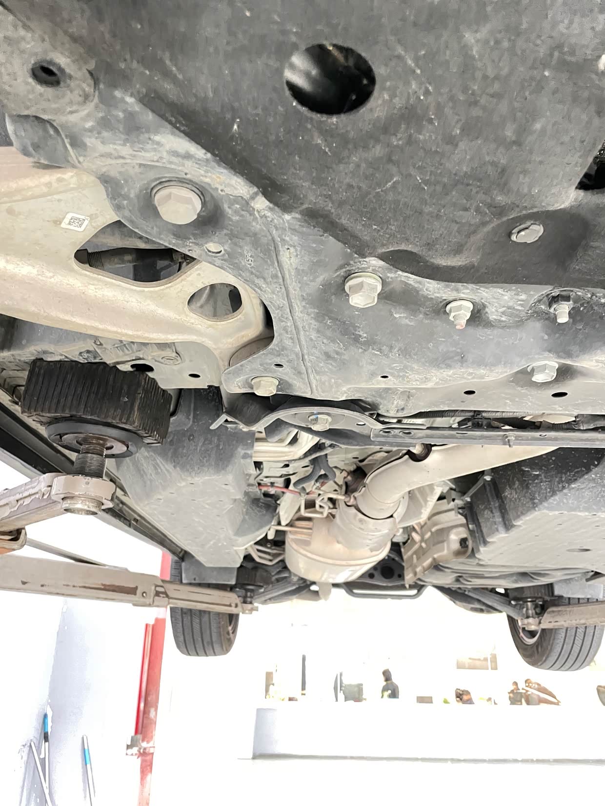 拆下底盘护板后也是非常标量的铝制发动机,看着和全新车有啥区别呢?没走过烂路,一周至少洗车一次的待遇