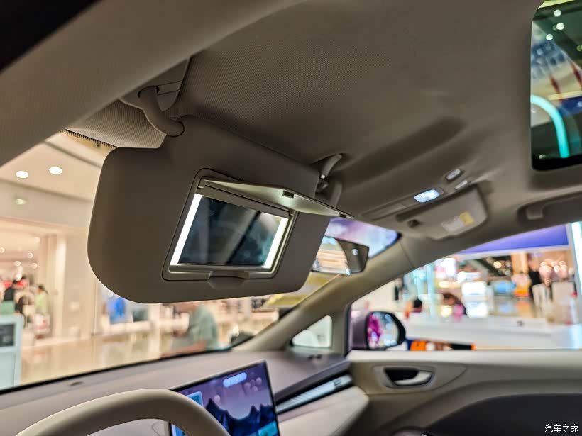 整个驾驶舱浅色内饰搭配的非常干净利落,没有复杂的线条,看着让人很舒服,车顶的天窗区域也都有实体按键