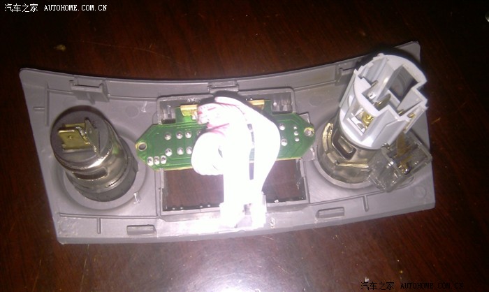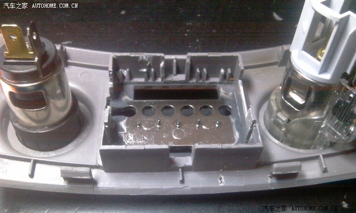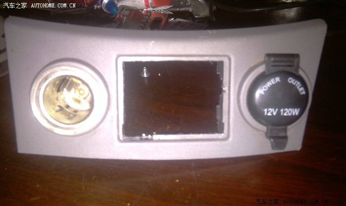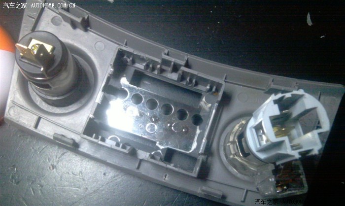 点烟器的面板也已经改的差不多了,两个黑色的卡扣拿掉以后,截掉中间的梁....就成这样了.