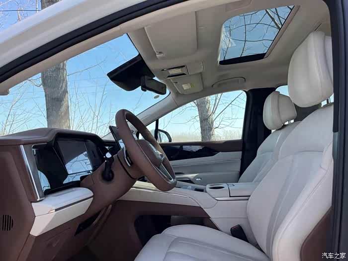 最打动我的就是空间。家里俩娃,再加上孩子姥姥姥爷,七座刚好满员。第三排没想象中挤,姥姥坐后面说腿能伸直,后备箱放俩儿童推车 + 露营装备也够用,上周去郊区烧烤,折叠桌、帐篷全塞进去了,尾门还是电动的,搬东西不用费劲往上抬。中排航空座椅是关键,带娃长途回老家,座椅能前后滑动、靠背放躺,俩孩子在车上睡午觉比家里床上还踏实,加热功能冬天特别实用,老人一上车就念叨 "这个座儿暖乎乎的"。
