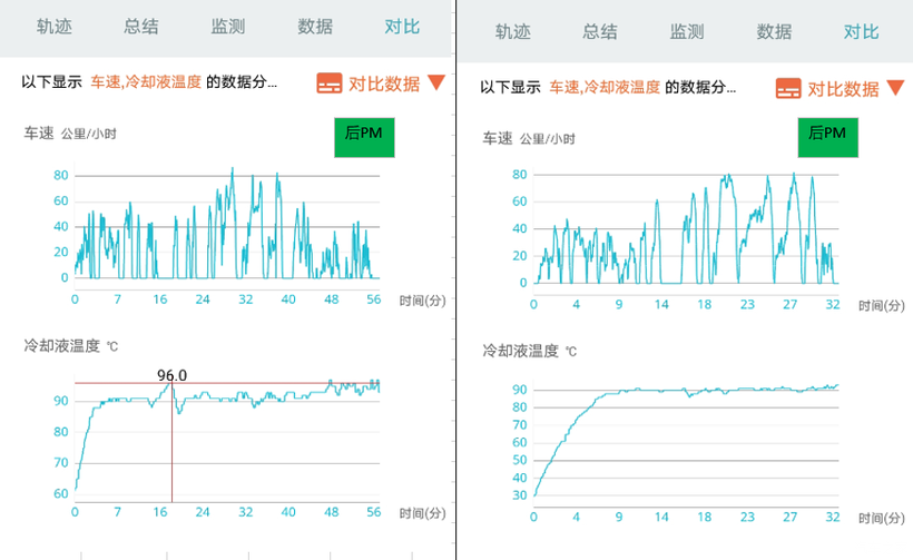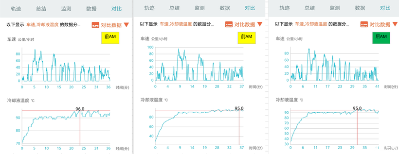 发现变化不明显,前2图是换前,右后是换后。都是会上升的95-96度,特别是中后段入市区灯多的时候,原地温度物别容易上到95-96