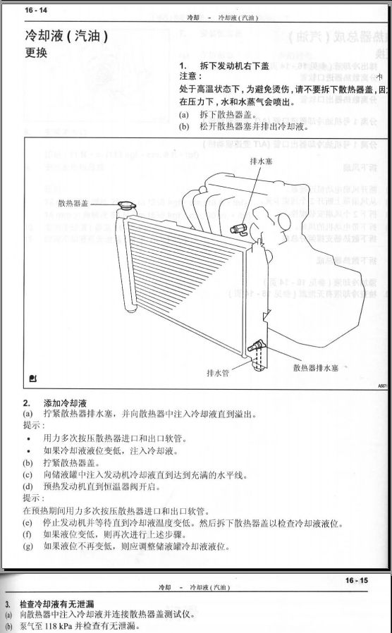 更换冷却液的说明书查查还是有好几种,摘录引用一下: