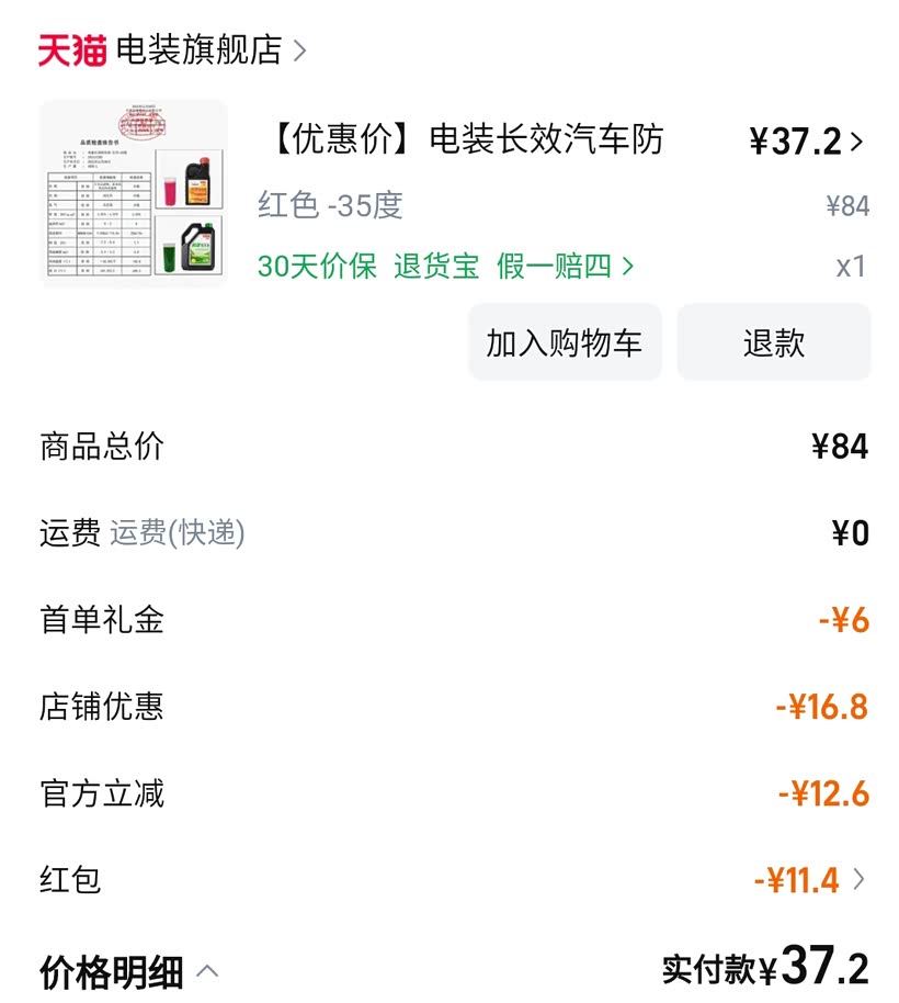 电装有防伪,这个点个赞,同选红色-35度规格的。