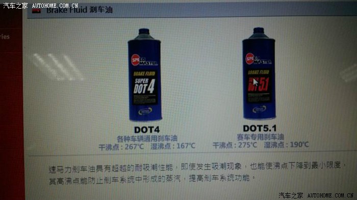 刹车油是分等级的:赛车》DOT5.1》DOT4》DOT3 — 原料基本是一样的,只是干湿沸点不一样 (有错欢迎指正)