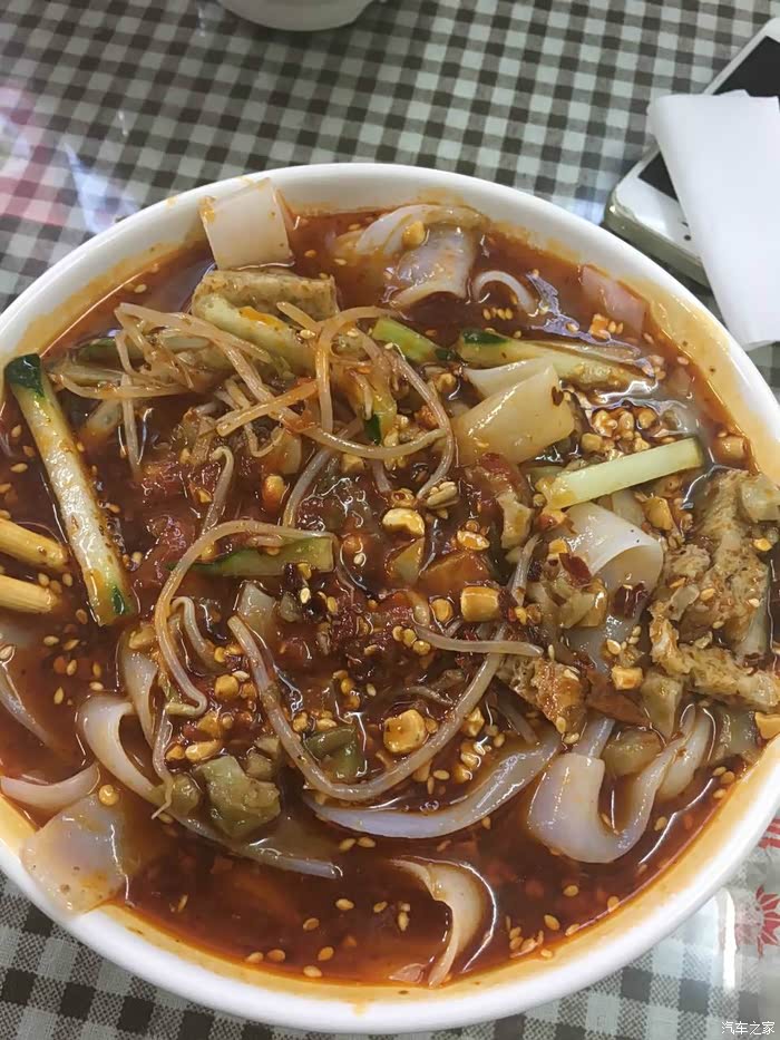 今天跟媳妇去观音桥逛街时候发现了一种新美食,我朋友推荐的,说是新疆凉皮,本来觉得没什么太大兴趣,但是朋友一直强烈推荐,还给我发图,我们看了下地址也不太远,抱着试试的心态于是就去吃了,说实话确实还蛮好吃的,而且正好赶上开业打五折,特别便宜,5块钱一大碗,店面不大,但是里面特别干净,老板也挺热情,(PS:老板也是跟我们长得一样的汉族人)本来打算当零食吃的,结果直接吃到饱才停。。。。