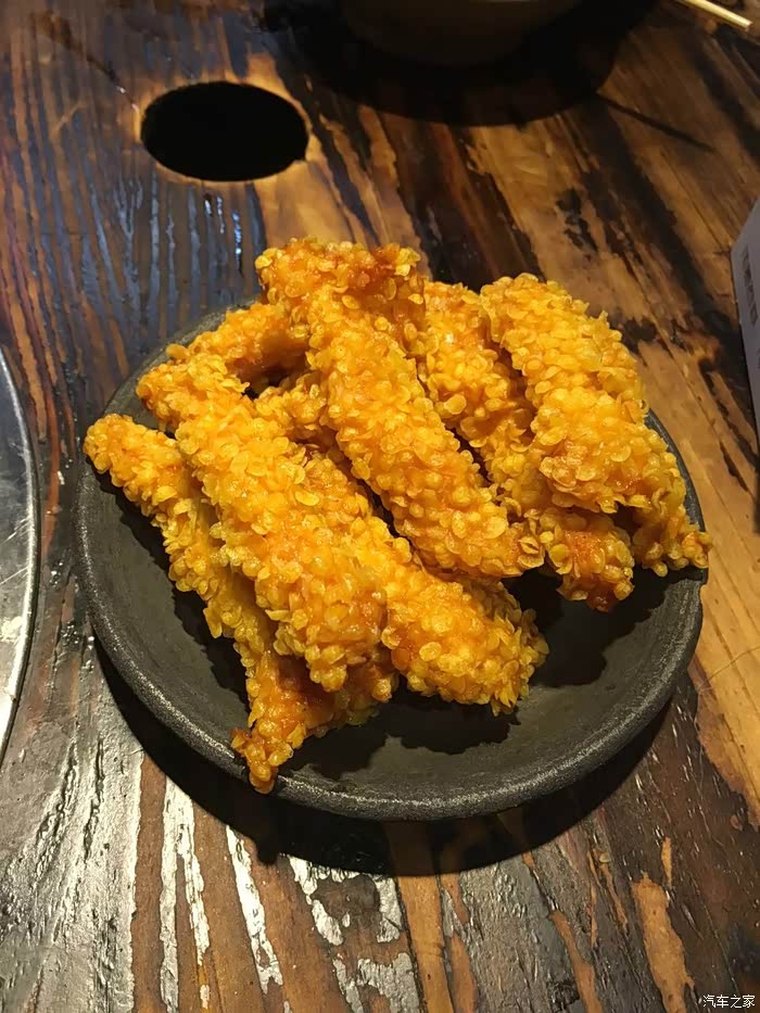 这个酥肉不是用的传统的猪肉炸的,里面是鸡肉,外焦里嫩,鲜嫩多汁,味道很棒!一上来就连着被媳妇消灭三块。