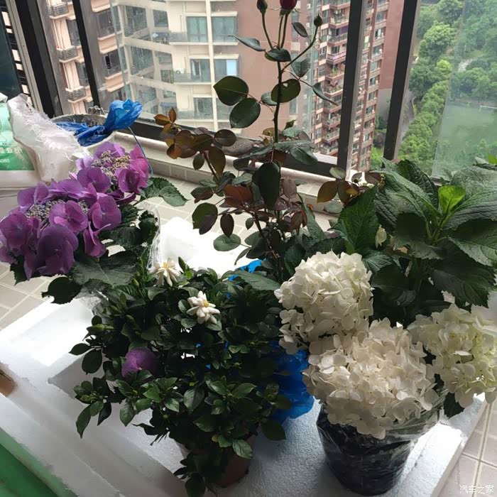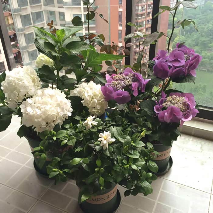 这盆好像是叫绣球花吧,放在家里还蛮好看。