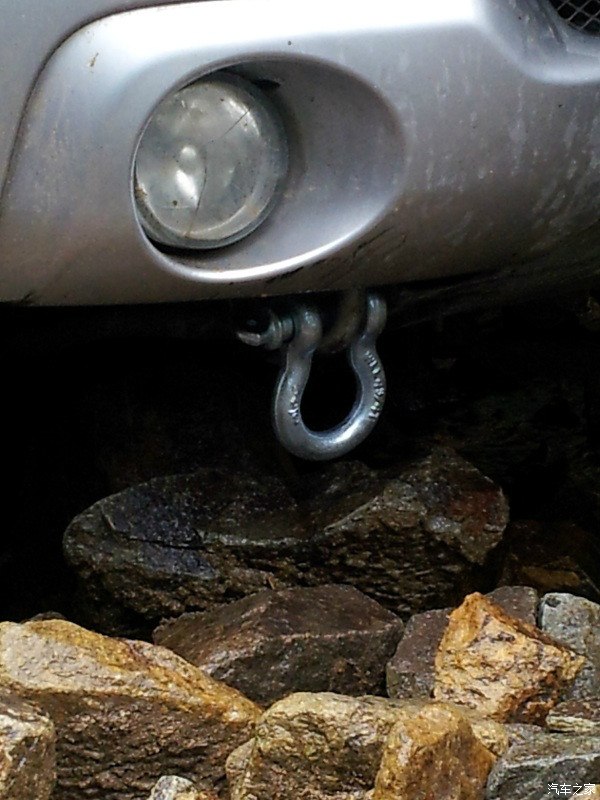 如果陷车不是很厉害,我们一般把救援车和被救援车相连接,直接拖出来。将U型吊耳的螺栓穿过被救援车辆的拖车钩,拧紧螺栓后回扭1/2圈,以防过紧导致救援完后极难拆下。然后将绞盘钩勾住U型吊耳弓形部位。