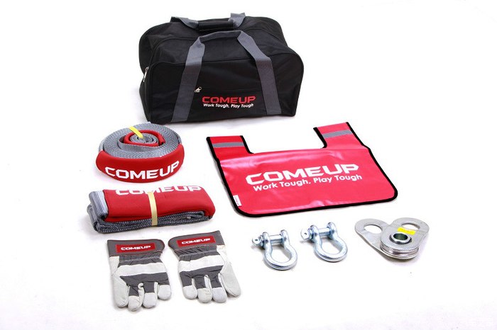 其实现在通用的办法是准备一个绞盘工具包套装在车上,方便易于携带。除了那几件不可少的物品,另外还备有绞盘延长绳,这也是能派上用场的重要物品。