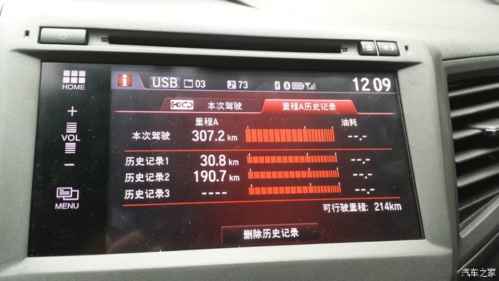 里程界面,能够显示瞬时油耗和行车里程,但是很遗憾不能显示平均油耗,不过小屏显示正常。