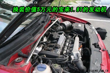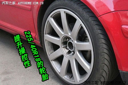经过耐心的等待,终于看到了那辆红色改装高尔夫。最为明显的特征就是原厂发动机盖已被质量更轻、强度更大的黑色碳纤维盖所代替。车子的重量得到降低,但却毫不损失整体强度。其次,车身上的大众标志也不见了踪影,带厂标的前风栏已经被网眼式风栏取代,后边的“一汽-大众”和“GOLF1.8”字样也被车主去掉了,换上了具有特殊意义的字母和“TURBO”字样,显示出拥有强劲动力的感觉。 『外观不是发烧改装的标志,但真正的发烧改装一定会改外观 』 纵观车身,最惹眼的要数225/40R18的轮胎。相对于原厂的195/65R15的轮胎来说,这个更加宽大的轮胎在起步时会损失掉一部分动能,但是无论在高速中的操控性还是制动距离上都有了不小的改进。加上轮毂,每个车轮的价格应该不会低于6000元,看来车主在他的爱车上真是下了不少的功夫。 打开碳纤维发动机盖,起初看着总觉得有些别扭。仔细观察后发现,高尔夫怎么会配有涡轮增压的发动机?难道是车主自己安的涡轮增压器?这和车身后侧的TURBO字样也比较吻合。但是通过和车主的探讨得知,原来根本就不是加装的,而是车主花5万多元换成了宝来1.8T的发动机。这使得车子在动力性上增加了不少。 坐进驾驶室内部,完全感觉到了扑面而来的运动氛围。后座已经不复存在,还安装上了确保安全的防滚杠。方向盘则被Sparco的小直径运动方向盘替代,使得操控更加灵活。原车配备的ABS、EBD、EPS已经统统被摘掉。油门踏板的高度也被调整到同一水平线上,使驾驶者可以轻松地作出像跟趾一类的技术动作。当引擎发动,我第一次听到它的声音,内心立刻激动起来。那种感觉会让你的全部血液在1秒之内沸腾,一种说不出的感觉驱使着你想去揭开它神秘的面纱。