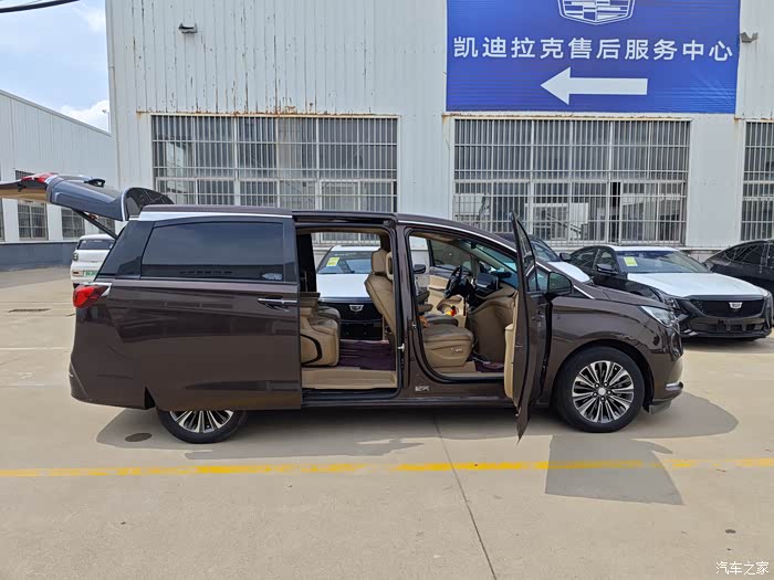今天来保养车,顺便拍一张。GL8是商务车,后面电动侧滑,只能从侧面看出是5门全开,哈哈哈。