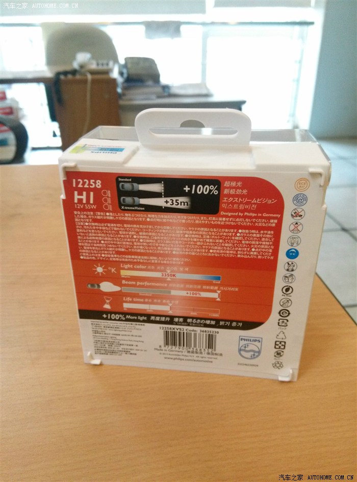 首先是近光灯 用得是飞利浦的 极劲光 号称100%增亮,实际大概能比原装好个20-30%左右吧。