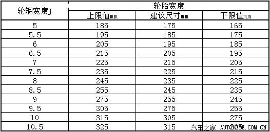 一. 使用原装轮辋。原装轮辋的宽度是5英寸,这个尺寸对应轮胎的正常宽度是175mm,下限值是165mm,上限值是185mm。