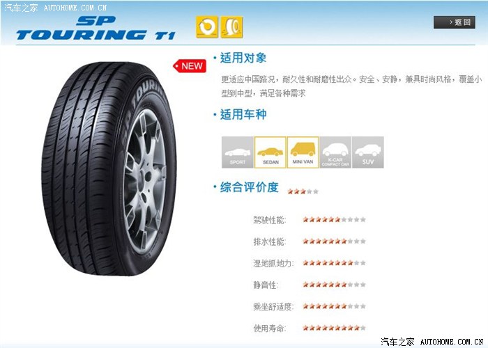 4. 邓禄普 SP Touring T1 卖点耐磨、静音;