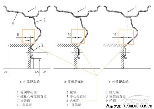 3. 换装轮辋时要仔细计算偏置距,换装后轮距的变化最好不要超过10mm,否则操控性、舒适性会受到较大影响。