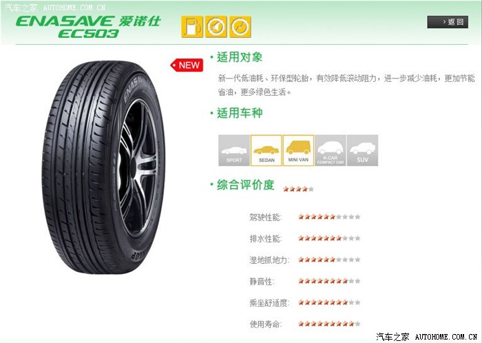 3. 邓禄普 爱诺仕EC503 卖点低滚阻、材料环保;