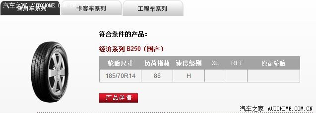 想在175mm宽的乘用车胎中找,必须得把扁平比降到70,175/70 R14这个规格的乘用车胎还是可以找到的,但是轮胎周长只有1886.8mm,静力半径300.3mm,这会使得显示车速比真是车速快3km/h,最小离地间隙也会减小,影响原车的通过性。5英寸轮辋的胎宽许用上限是185mm,不带来较大车速误差的话,可以使用185/70 R14的规格。轮胎周长1930.8mm,显示车速比真是车速只快1km/h。而且幸运的是,这个规格的胎有的选: