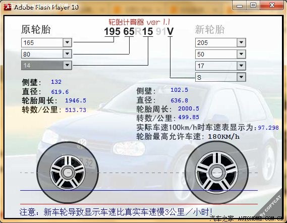 最后给大家分享一下小工具“轮胎计算器”,下载地址http://yunpan.cn/Q49Bf7rxdxIXY。