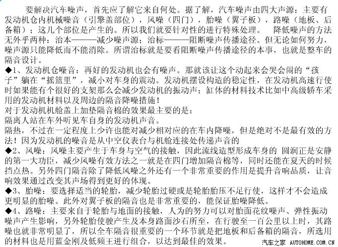 下面就开始解说汽车噪音来源: