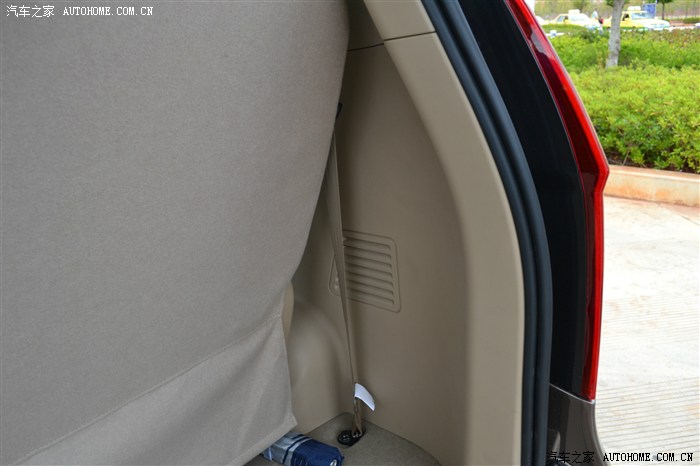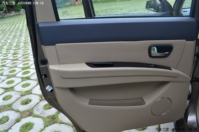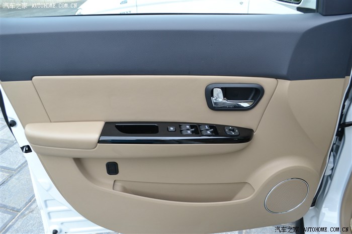 前门扶手有幅度 手肘位置和门板边都是包皮 手放上去舒适度肯定比老款好N倍 内拉手.开关.喇叭都镀珞装饰了 看起来更高档 左边黑色的按键是独立开启尾门的开关 储物格还是不能放水 但是没有老款这么深了 也稍微比老款大一点
