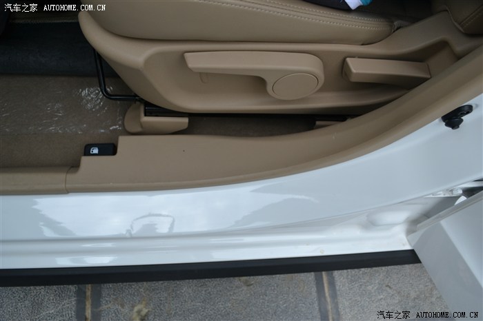 座椅6向调节 老款豪华的是旋钮式的 调节的力度要大 而且旋钮摩擦到座椅包皮的那种声音听起来很不爽 新款设计这样好多了 上下拨动试 另外门槛装饰板 和油箱盖开关都有变化 这样更能包裹到座椅位置 油箱盖开关相比老款大很多