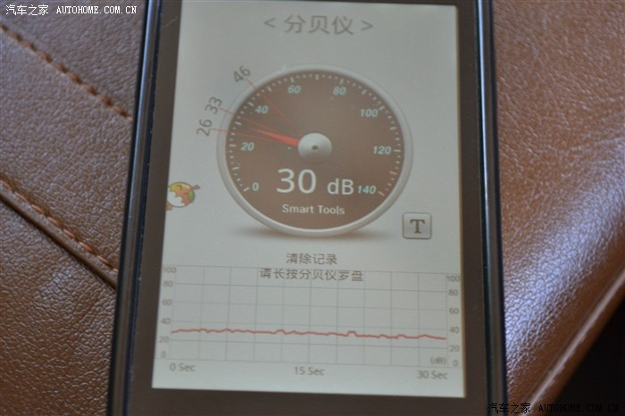 5档80码 分贝仪放在扶手箱的位置 基本在28到32分贝左右