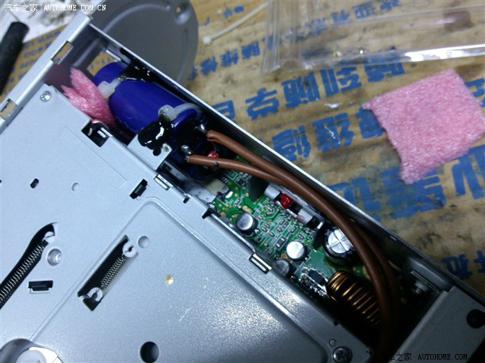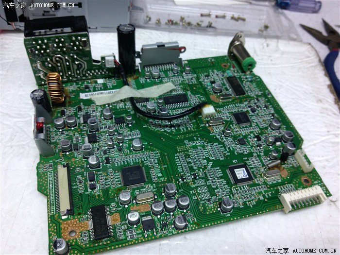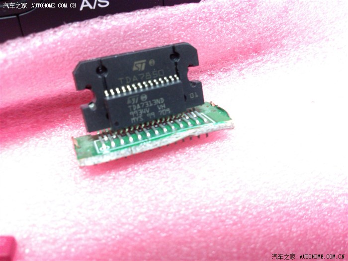 大家好~很久没有作业了,早就有留意有很多人在改原车CD的功放,大部分都只换个功放IC,那绝对不会提升超过 5%,除了大声以外。我改好也有几天了,今天就给大家分享下一起研究研究。有哪里做得不好的大家就提点下吧!我好容易就把机拆下来了~打开看了是PT2313的前级加TDA7388后级。PT2313多用在我们家里的液晶电视机上,档次大家都应该想到了吧,TDA7313是具有音量、高低音调的左右平衡及前后混频调整的立体声音频数字处理器件,它的输入通道可以选择,并具有相应的外部响度调整函数以及I2C串行总线接口,因此可广泛应用于汽车音响和高保真系统中。7388和7850我会给大家看资料自己对比下吧。升级后声压还真有点来了!好了不多说上图。。。动手能力强的车友快快跟上.......