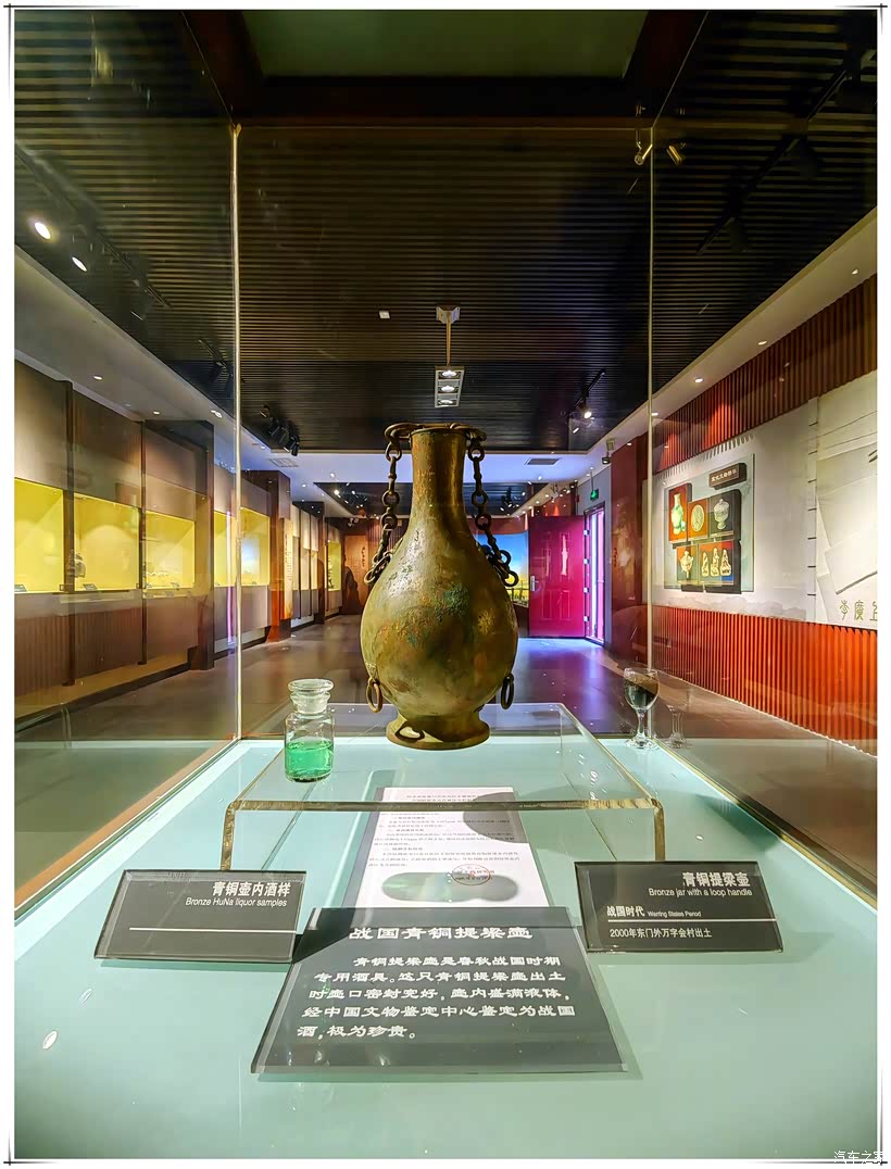这战国时期的青铜提梁壶也颇具特色,刚出土时还装满了美酒,可见墓主人生前对酒的热爱。经过几千年的沉淀,铜壶里的铜与酒混合,酒变成了迷人的绿色。你敢尝试这杯千年老酒吗?