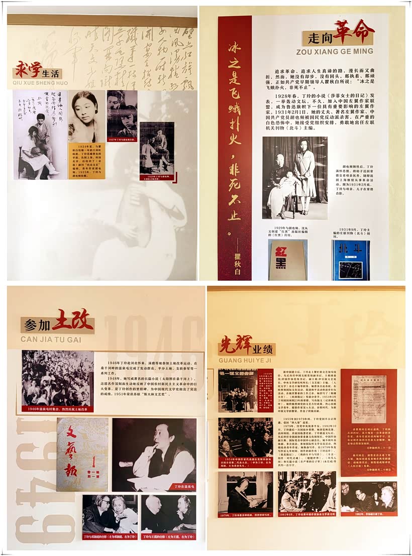 纪念馆分为三个展室,分别是“丁玲生平介绍”、“丁玲旧居”和“小说人物与原型人物介绍”。馆内陈列了大量关于丁玲生平的图片和文字资料,包括由丁玲的爱人陈明先生提供的丁玲著作、未发表过的珍贵照片和实物。