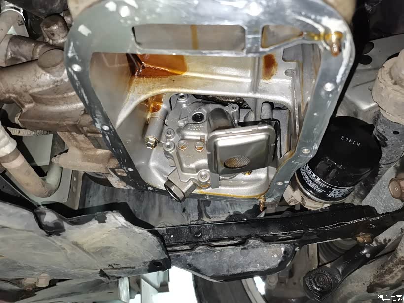然后拆卸油底壳,放掉机油,可惜了我才刚刚保养时更换的新机油