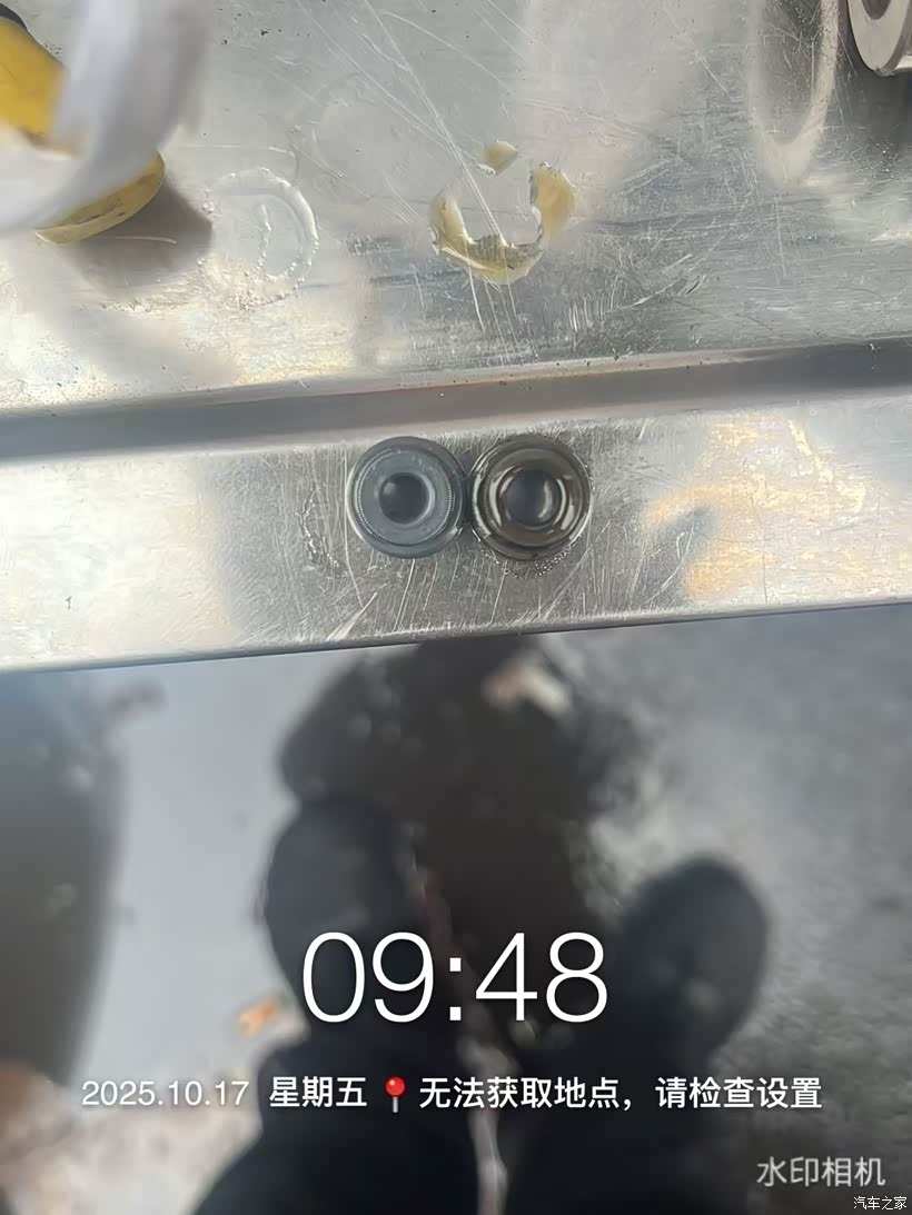 新旧油封对比,我看不出来有啥区别,师傅说,旧的孔变大了,所以机油进入燃烧室燃烧,形成积碳