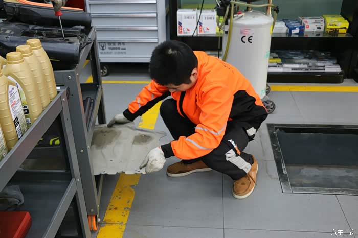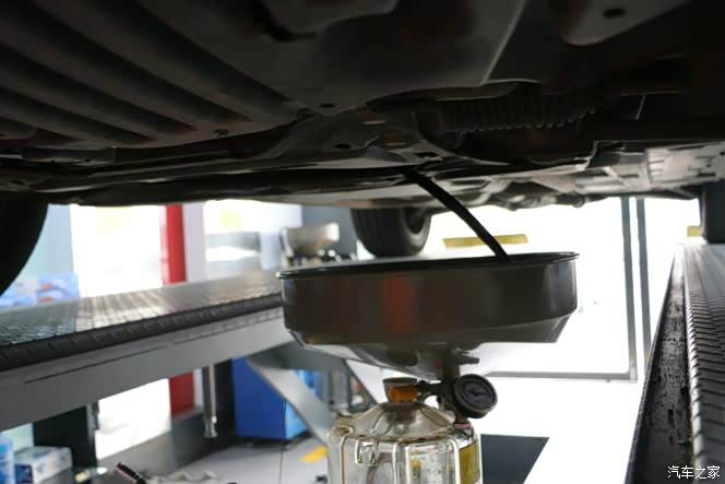 开始换机油了,以前在4S店都是抽油,这次是放油。听这位小师傅说,之所以从下面放油,也是因为这样放的干净,新加进去的机油不会被残余的旧机油污染。